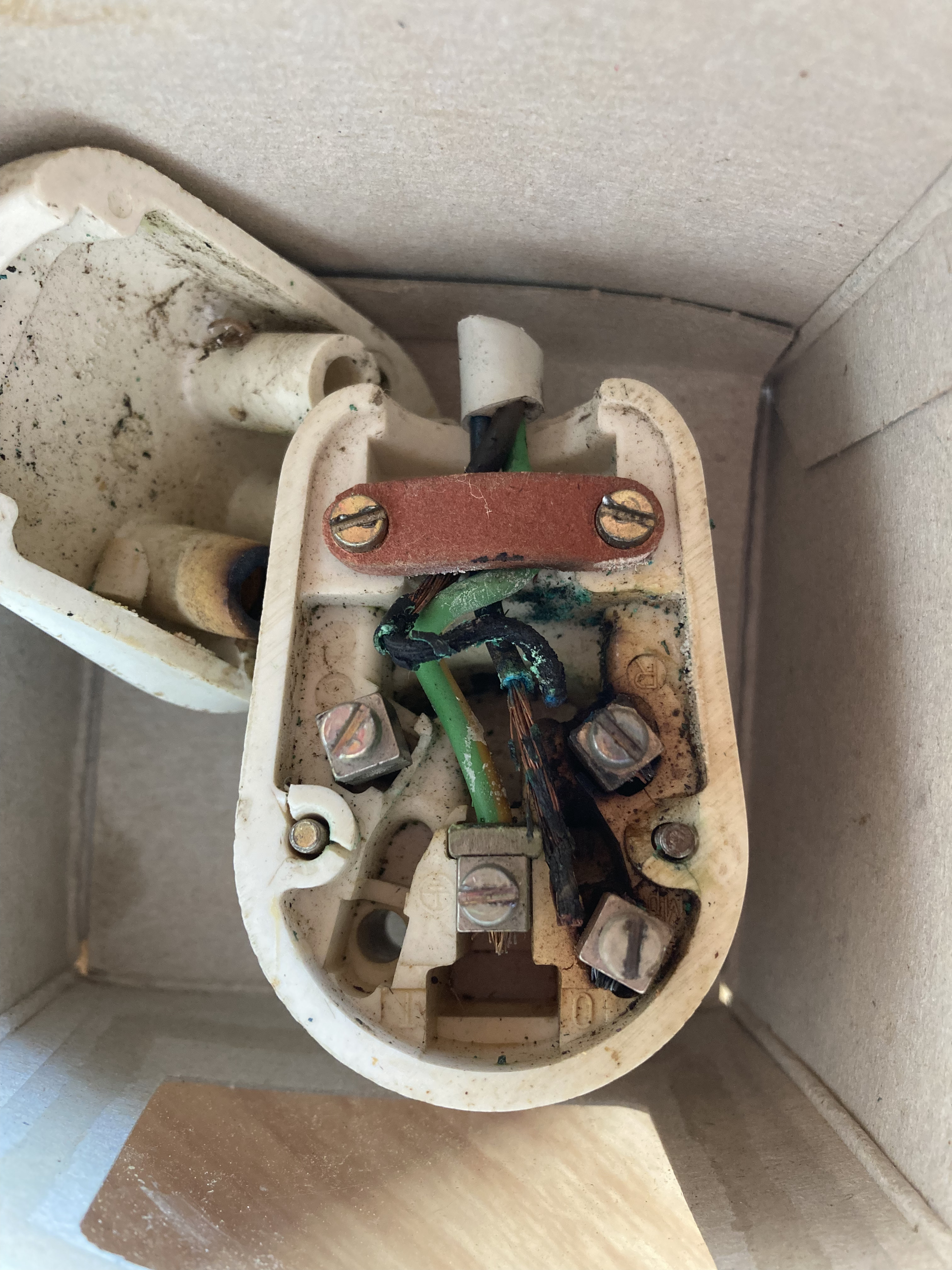 Wir haben bei diesem Gerät noch einen alten Starkstromanschluss – den gibt es seit den 1980ern glaube ich nicht mehr. 😀 Aber ich lerne gerne auch noch dazu. Dieser Stecker war nun etwas „abgenutzt“ und musste getauscht werden. Zum Glück fanden wir bei uns in der Werkstatt noch einen passenden Stecker – originalverpackt. Weil zu kaufen… hm. Ich weiß nicht, ob man sowas überhaupt noch bekommt.